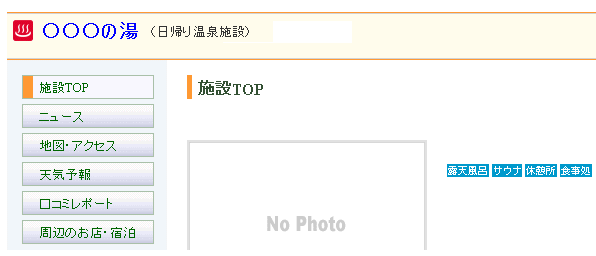 *施設TOPとニュースは、施設側で内容の追加・変更ができます。特にニュースは、日記形式で記事を書けますので、ぜひご活用下さい。